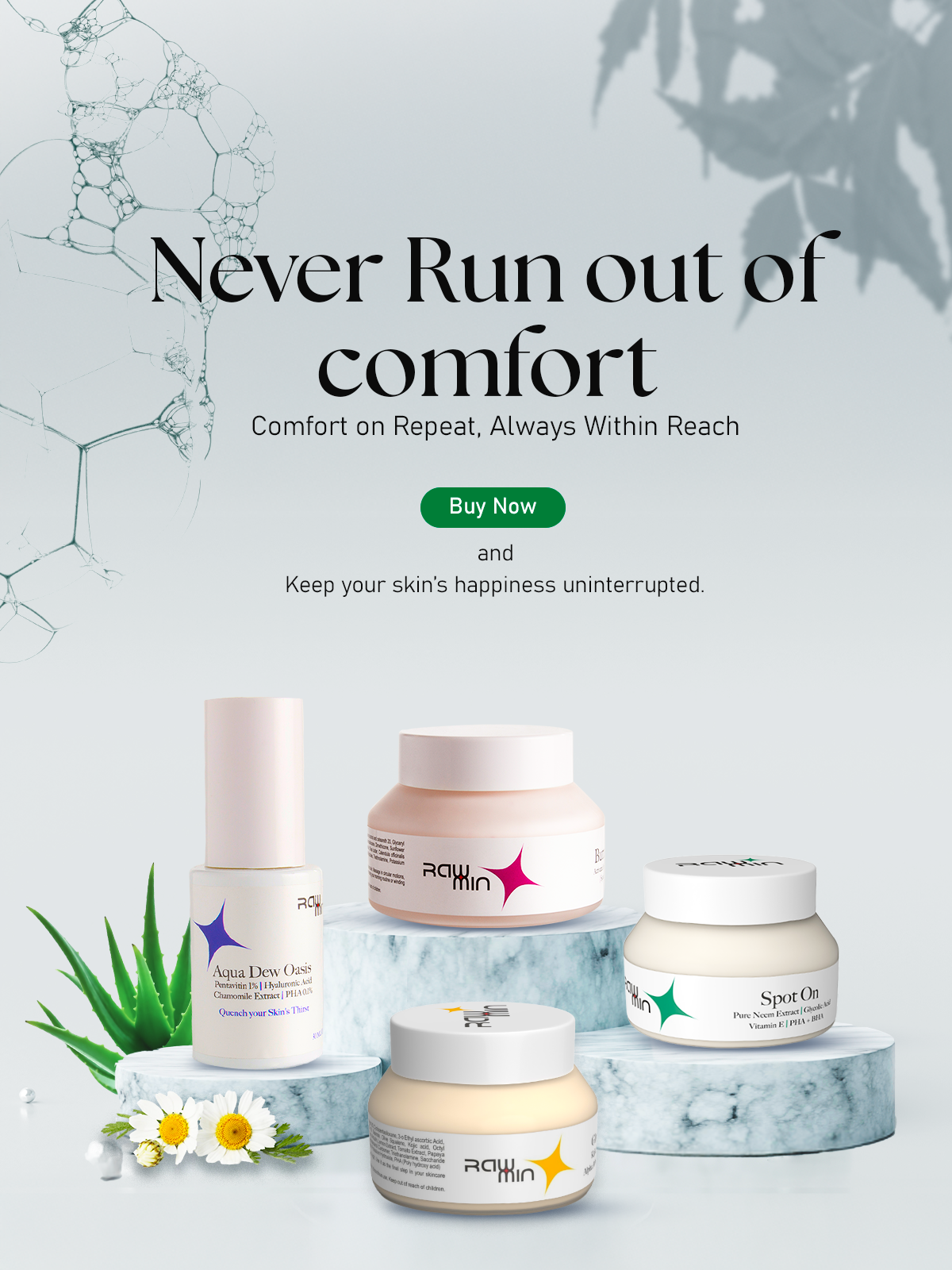 RawMin is here to change that. Designed for everyone, RawMin brings the cozy, nurturing care your skin craves. Let RawMin be your skin's comfort on any day, wrapping you in the gentle, caring touch it deserves. Because just like your favorite comforts, your skin should feel cherished too.